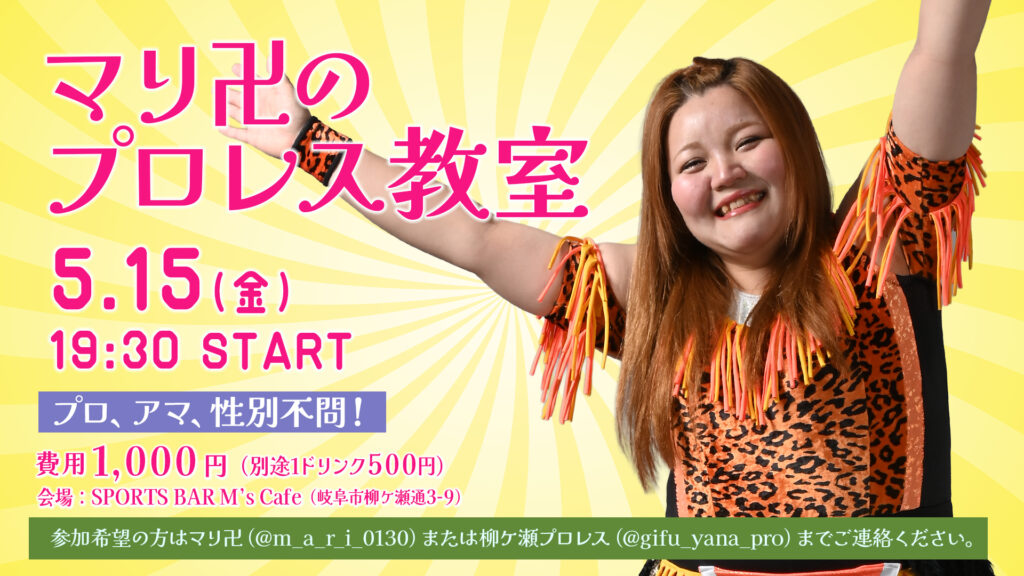 柳ケ瀬プロレスは、岐阜市の中心市街地・柳ケ瀬商店街を本拠地とするプロレス団体です。2017年の旗揚げ以来今年で8周年を迎え、「プロレスで岐阜を盛り上げる!」という変わらぬモットーのもと、日々活動を続けております。リング常設の会場「SPORTS BAR M’s Cafe」にて、毎月第1・第3土曜日に柳ケ瀬プロレス本体興行を、毎月第2・第4金曜日に「フライデーナイトマッチ」を定期開催しております