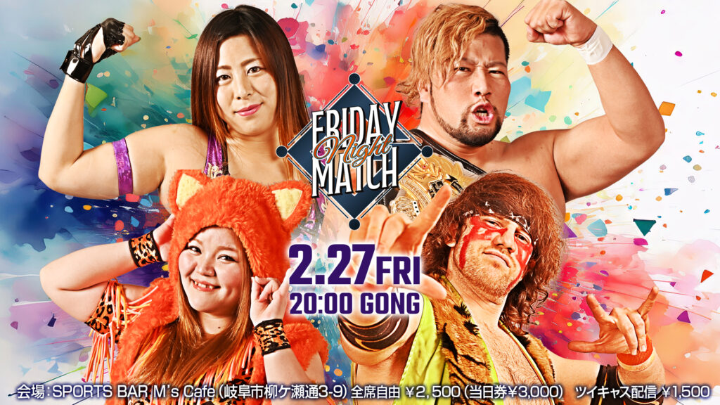 2026年1月9日「フライデーナイトマッチ」 会場:SPORTS BAR M's Cafe(岐阜市柳ケ瀬通3-9)全席自由¥2,500(当日券¥3,000) 新年明けましておめでとうございます。柳ケ瀬プロレスの定期開催興行「フライデーナイトマッチ」は、1月9日(金)20:00スタ...