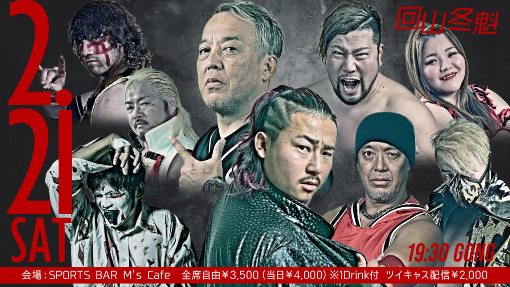 回山冬魁 2026年2月21日 会場:SPORTS BAR M's Cafe 20:00試合開始 第1試合 3WAYマッチ 20分1本勝負 〇小仲=ペールワン VS 7分46秒 横入り式エビ固め※急所打ちから ジャック・ケネディ● ※もう一人は影山道雄 第2試合 タッグマッチ 20分1本勝負 ... -