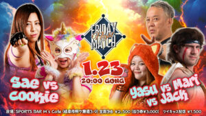 ジャック「今年最初の柳ケ瀬土曜日、俺は勝った!みんな、あけおめ。今日はレッカと戦った。やっぱり攻められた腕が痛いな。けど、腕は2本ある。この(攻められていない)左のラリアットも強いぞ。右でも、左でも、足でも、ジャッキードライバーでも。何でも勝つことが出来るぞ。じゃあ、1月は残りの柳ケ瀬の試合がある。2月もいっぱい試合がある。楽しんでくれよ」